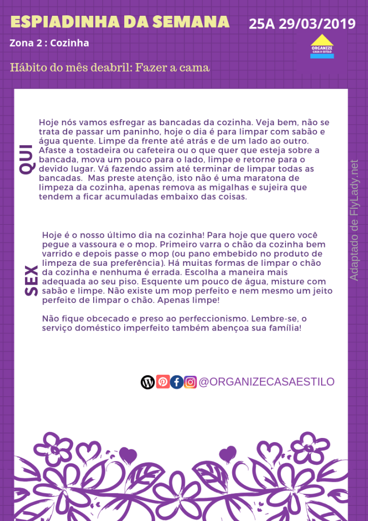 Para entender o que é a espiadinha e como ela se encaixa no sistema FlyLady, leia aqui.