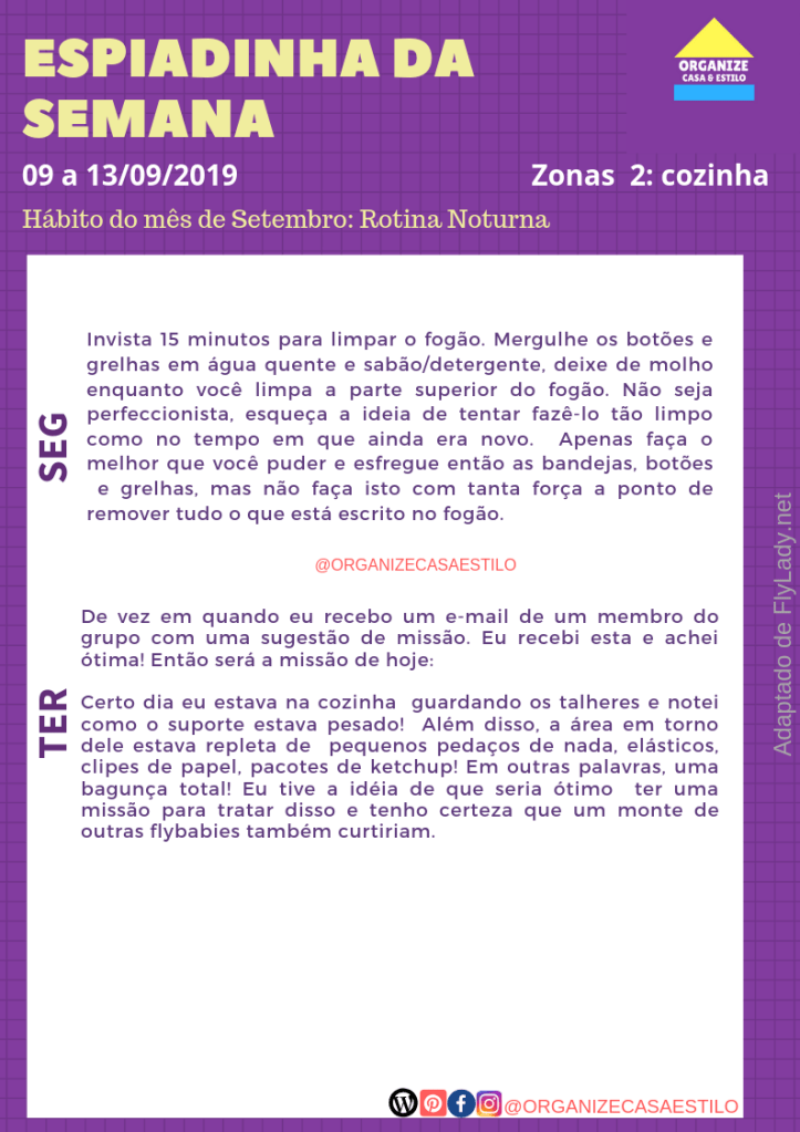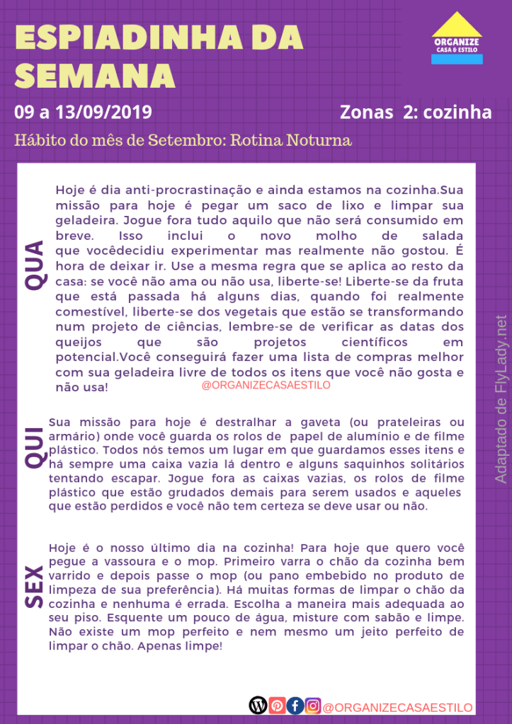 Nesta semana vamos dar atenção especial à Zona 2 – cozinha , o coração da casa, e também um dos cômodos que suja mais rápido!