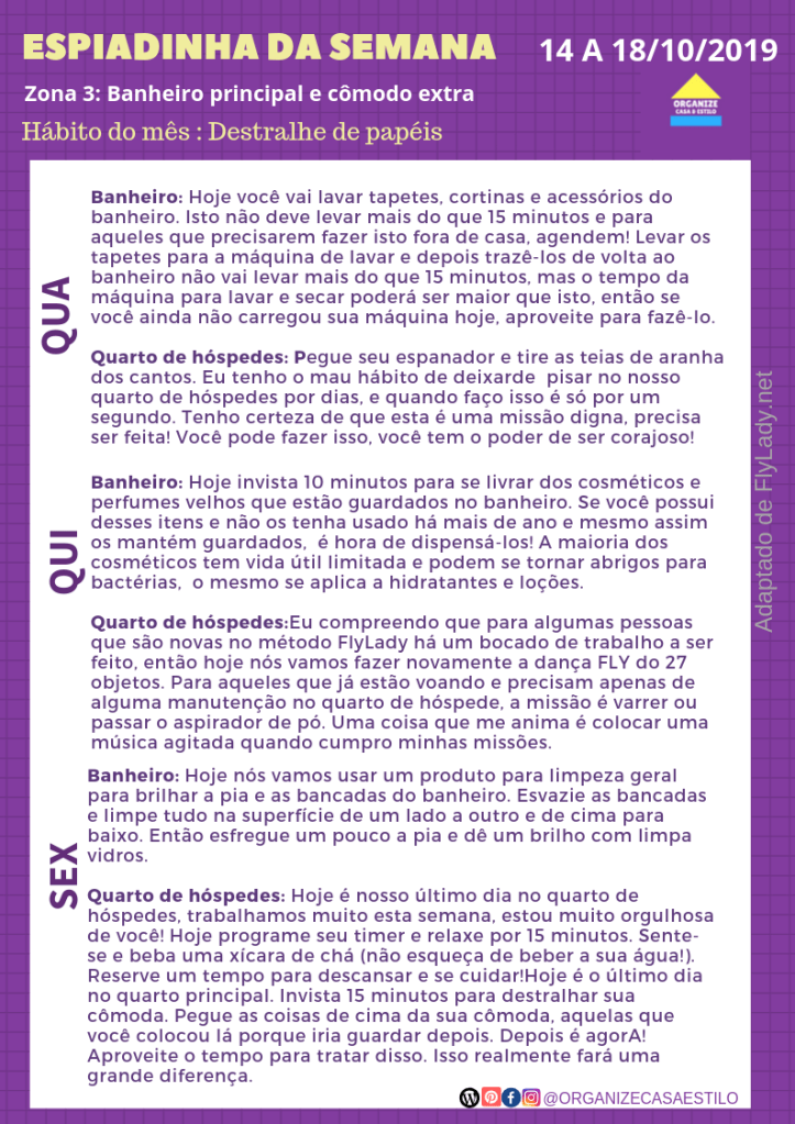 Nesta semana vamos trabalhar na Zona 3 – banheiro principal e um cômodo extra. O cômodo extra este mês será o quarto de hóspedes.