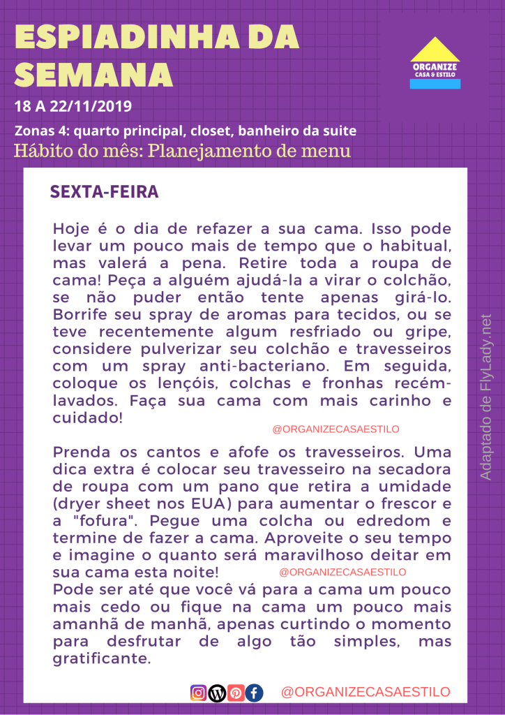 Aproveitem a Espiadinha da Semana e programem-se para a realização das missões Fly! Para entender o que é a espiadinha e como ela se encaixa no sistema FlyLady, leia aqui.