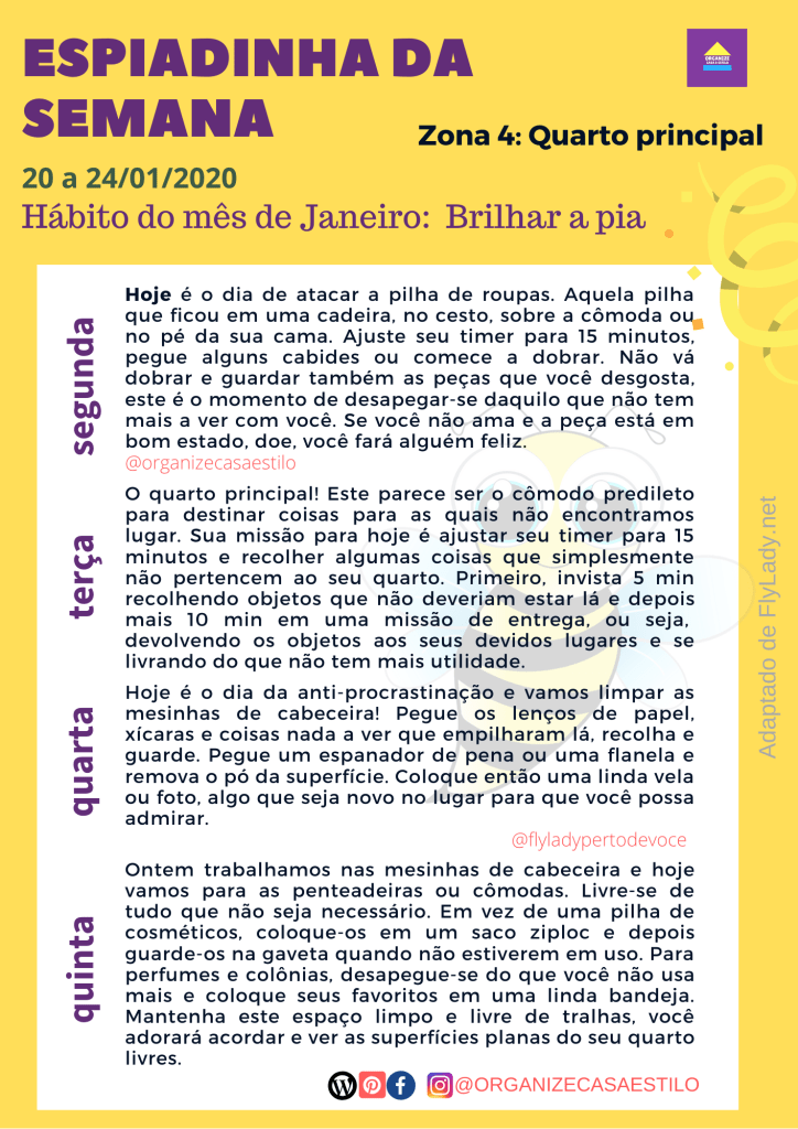 Nesta semana vamos trabalhar na Zona 4 – o quarto principal. Siga as missões desta semana e, no primeiro mês do ano, deixe o seu quarto mais aconchegante para curtir todos os outros meses!