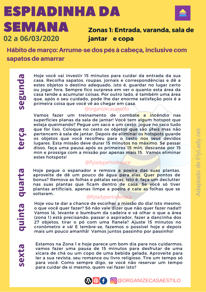 Para entender o que é a espiadinha e como ela se encaixa no sistema FlyLady, leia aqui.
