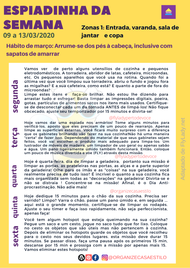Para entender o que é a espiadinha e como ela se encaixa no sistema FlyLady, leia aqui.