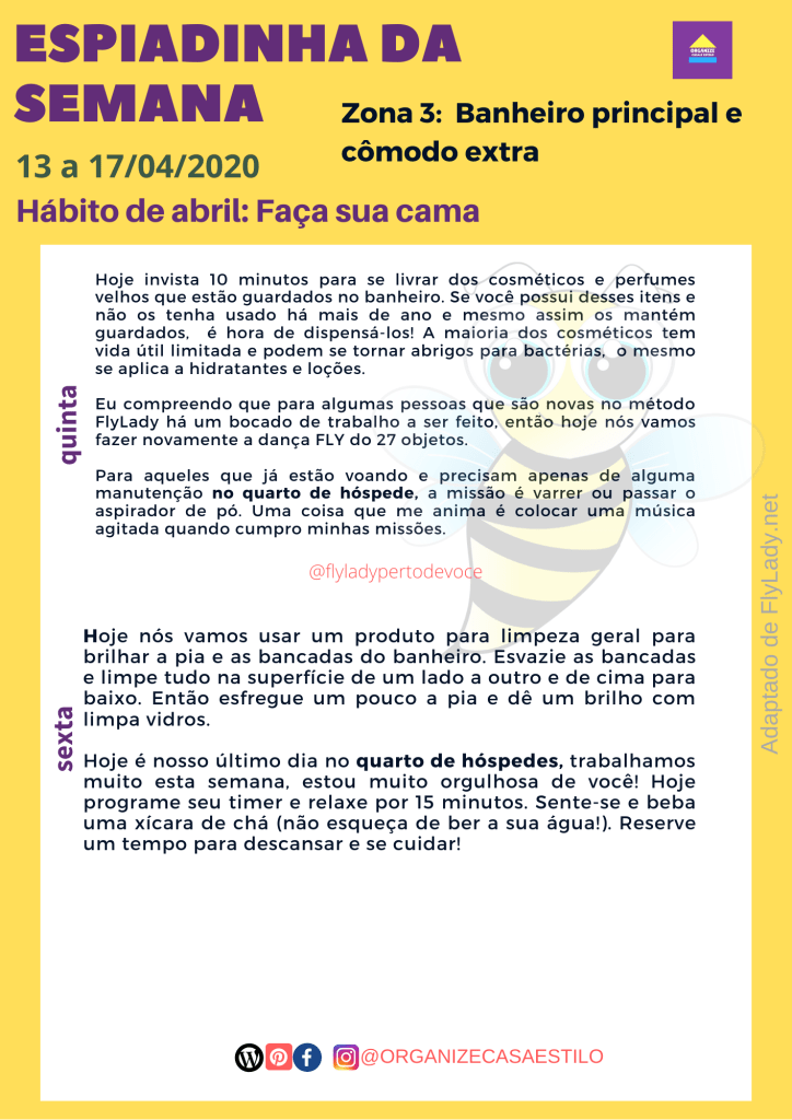 Nesta semana vamos trabalhar a zona 3 – o banheiro principal e um cômodo extra que este mês será o quarto de hóspedes.