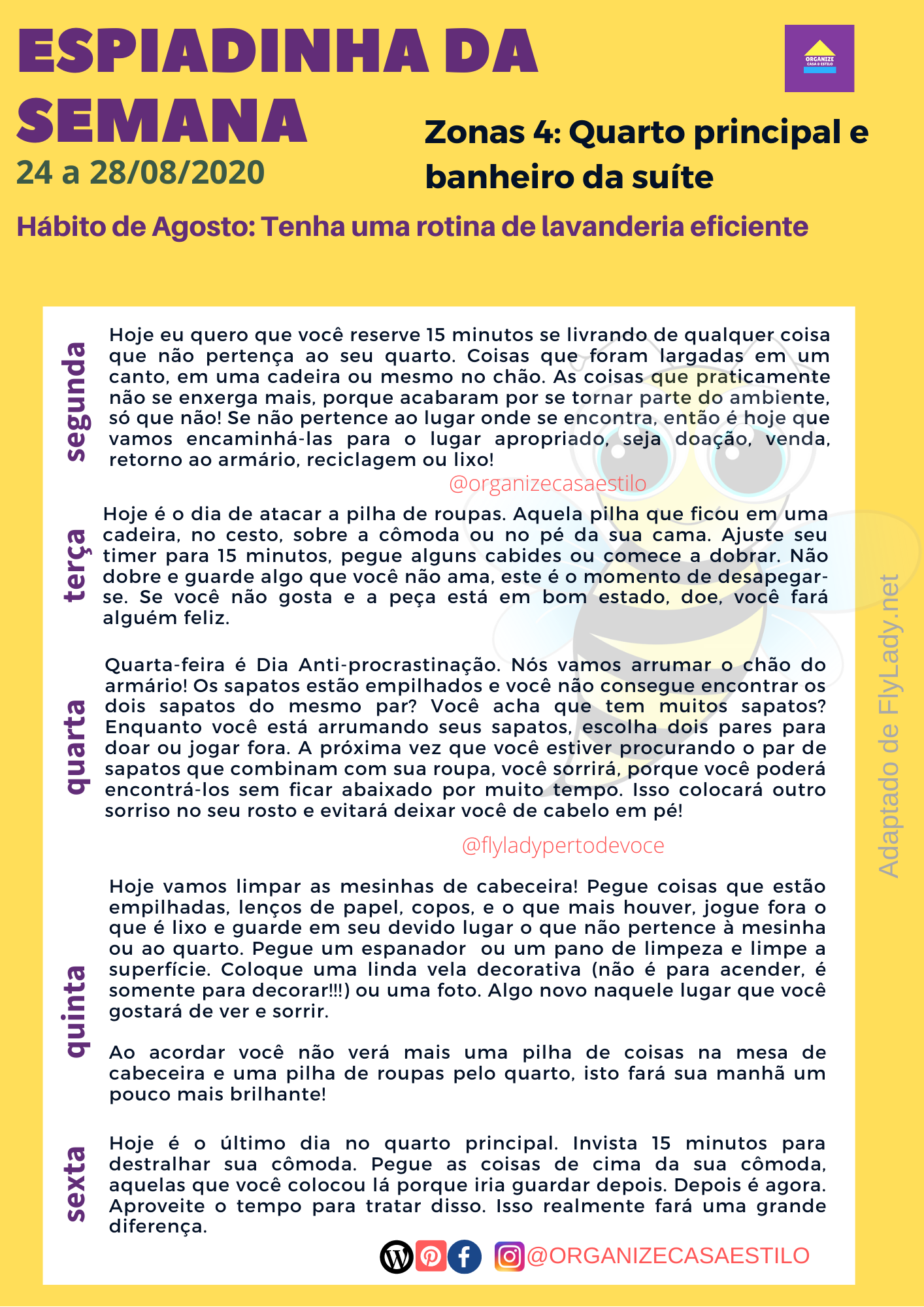 Aproveitamos também para lembrar que no mês de AGOSTO é dedicado a aprimorar a rotina da lavanderia, este é o hábito a ser cultivado com mais carinho este mês! Nós já falamos sobre lavanderia no Babystep 20 , que tal fazer uma revisão?